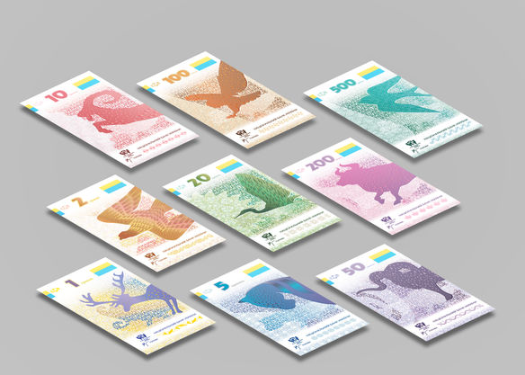 The main elements of the banknotes were chosen as typical representatives of of Ukraine fauna. Each animal describes a period in the history of Ukraine. I used original proportions of existing grivnas for my design as their denomination increases,